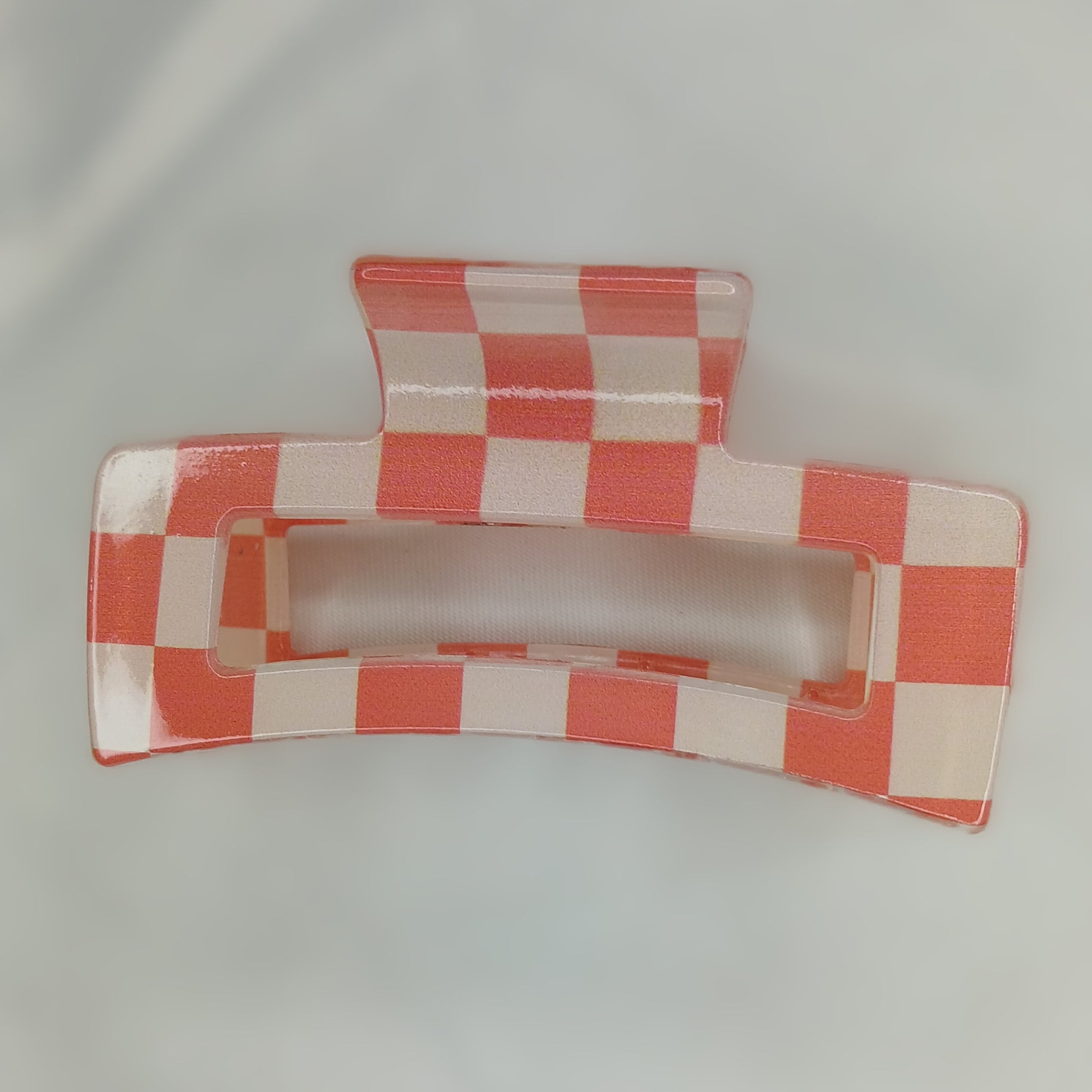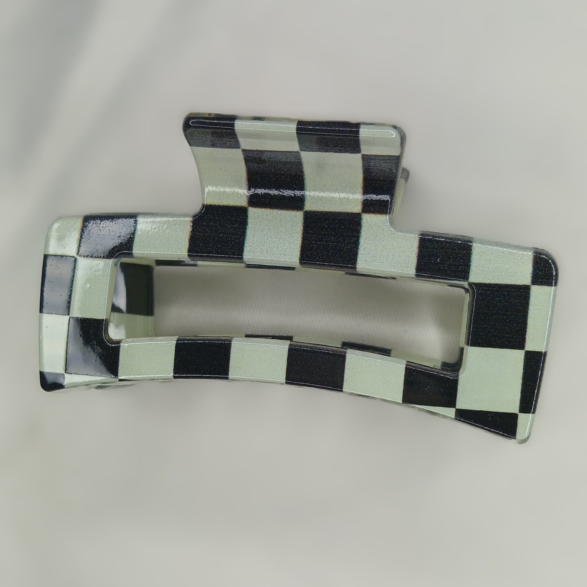 Made from high-quality plastic with a shiny finish, these clips are lightweight yet strong, perfect for securing ponytails, half-up styles, or messy buns. The glossy checkered surface adds a touch of elegance and fun to your look.