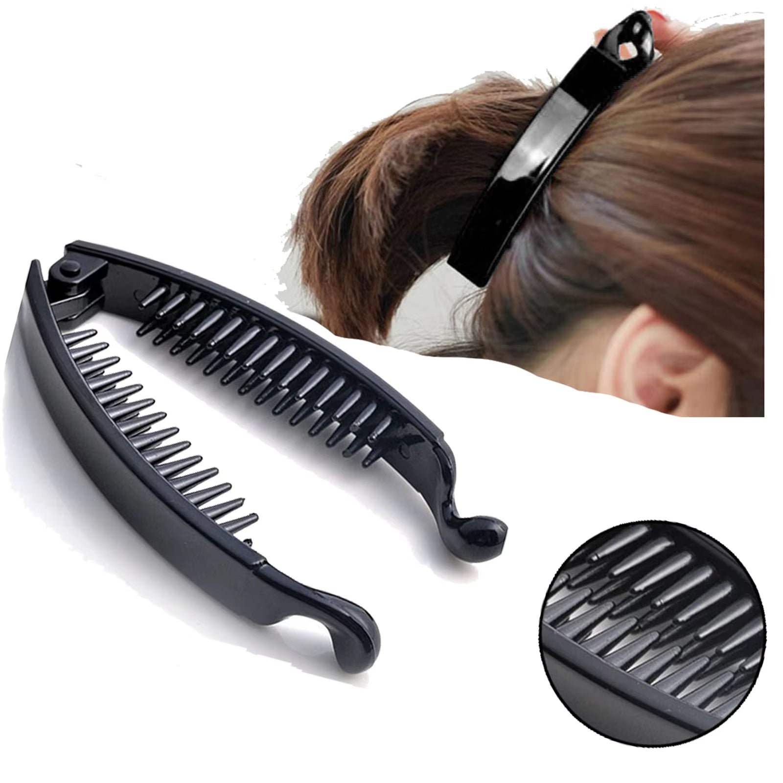 Classic Black Banana Hair Clip – Curved Plastic Hair Accessory for Ponytails & Updos