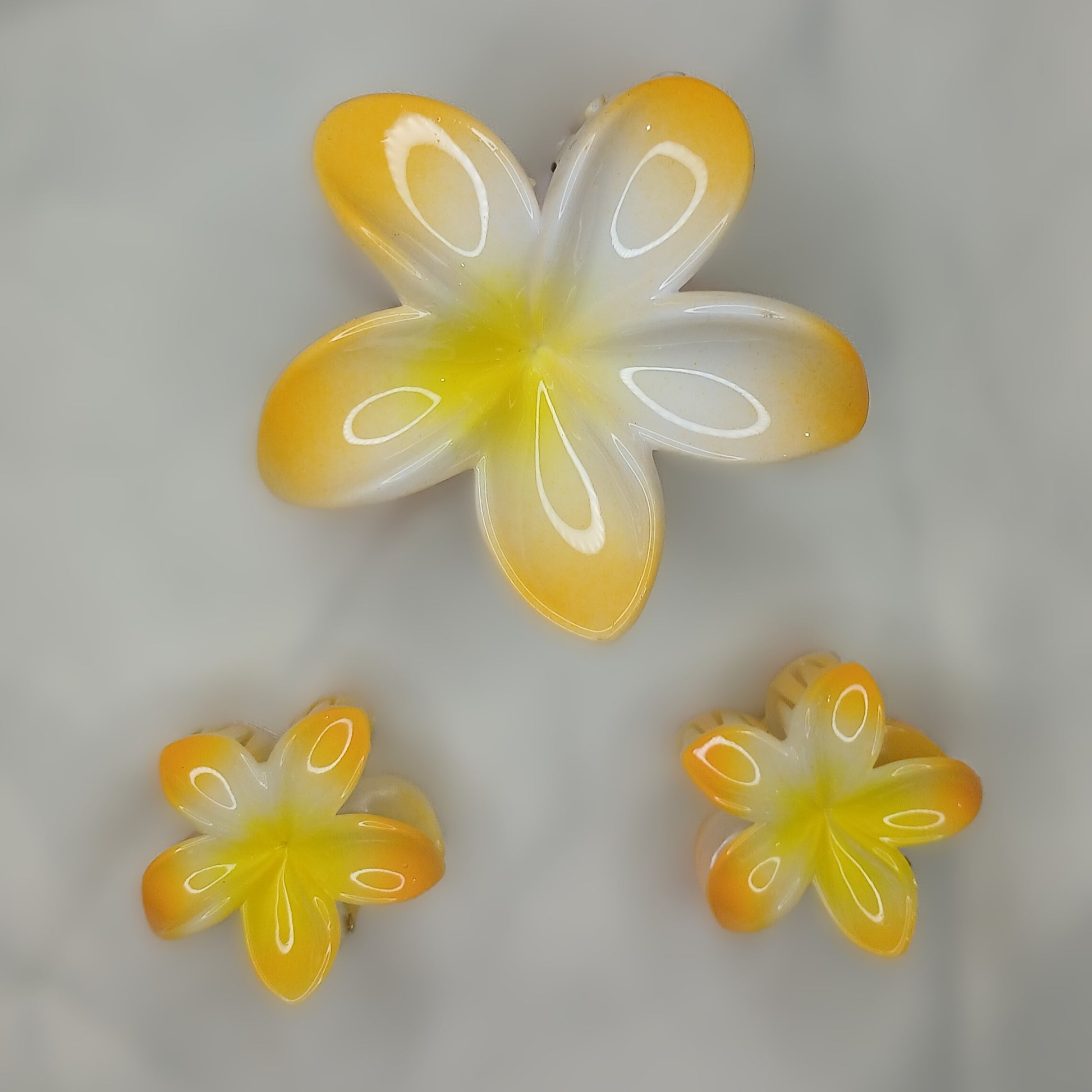 Add a touch of floral elegance to your hairstyle with our Glossy Flower Hair Claw Clip Set – featuring 1 large 3x3 inch clip and 2 small 1.5x1.5 inch clips, perfect for styling all hair types. These premium-quality plastic clips come in vibrant, multi-colored finishes with a high-gloss shine that catches the light beautifully.