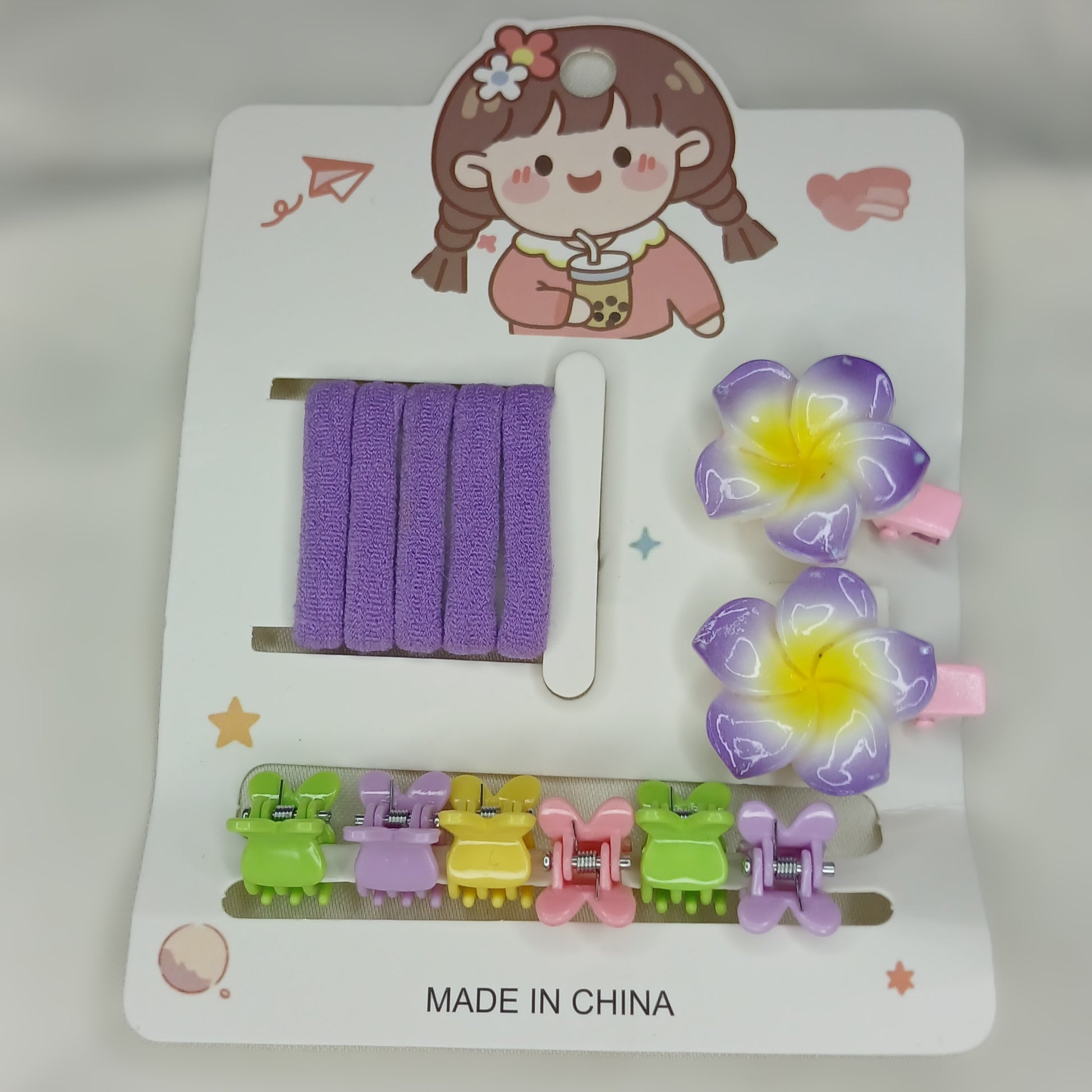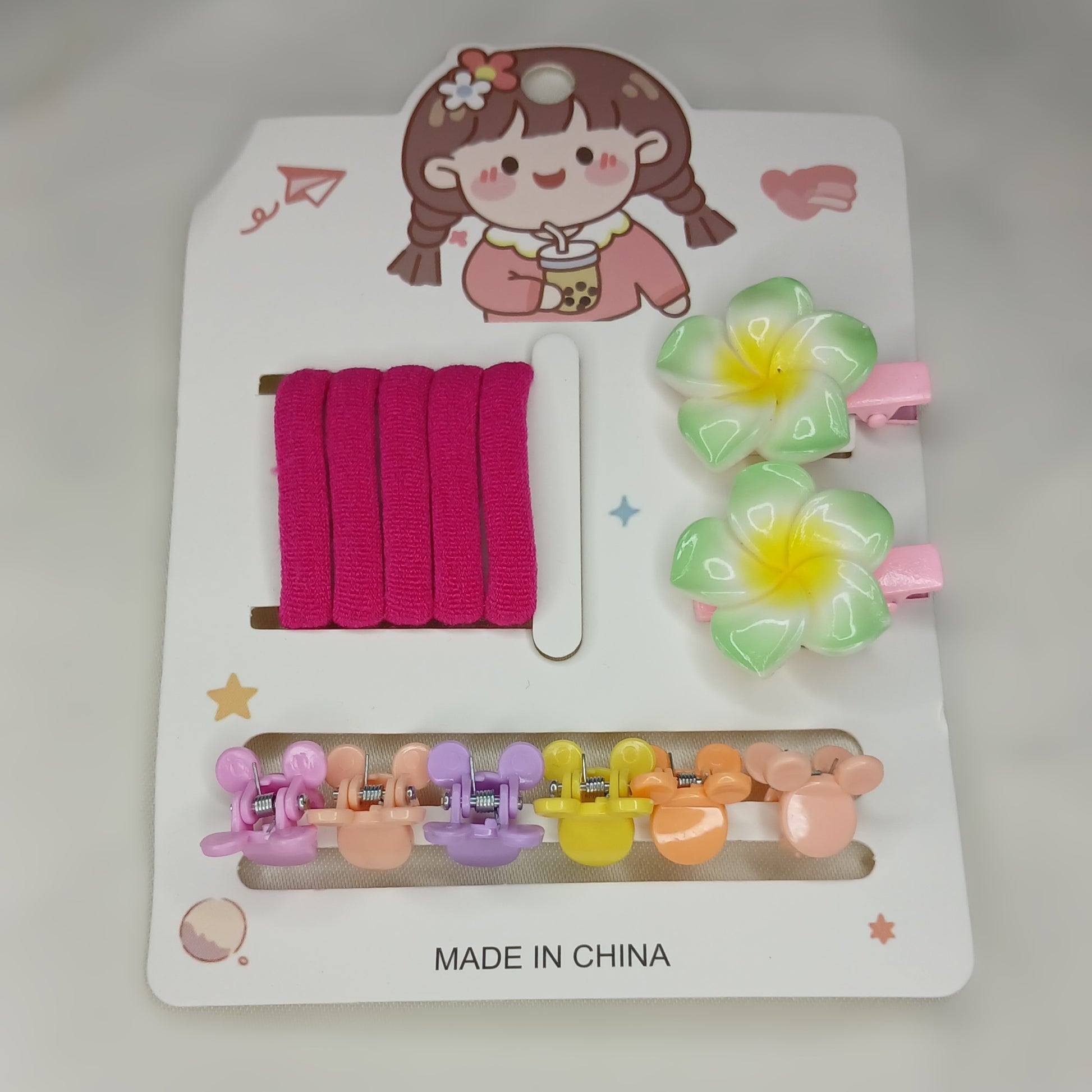 - Total Pieces: 13 (5 hair ties, 2 flower clips, 6 mini clips)