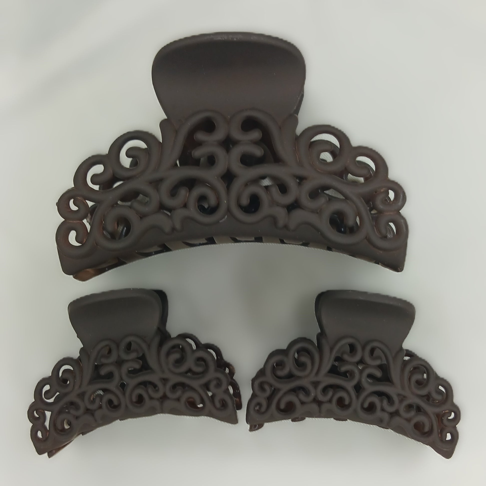 Add effortless style and secure hold to your hair with our Set of 3 Hollow Hair Claw Clips – designed with a trendy shark-style grip and elegant openwork pattern. Crafted for both function and fashion, these matte-finish clips are perfect for women and girls who want to elevate their everyday or event-ready hairstyles.