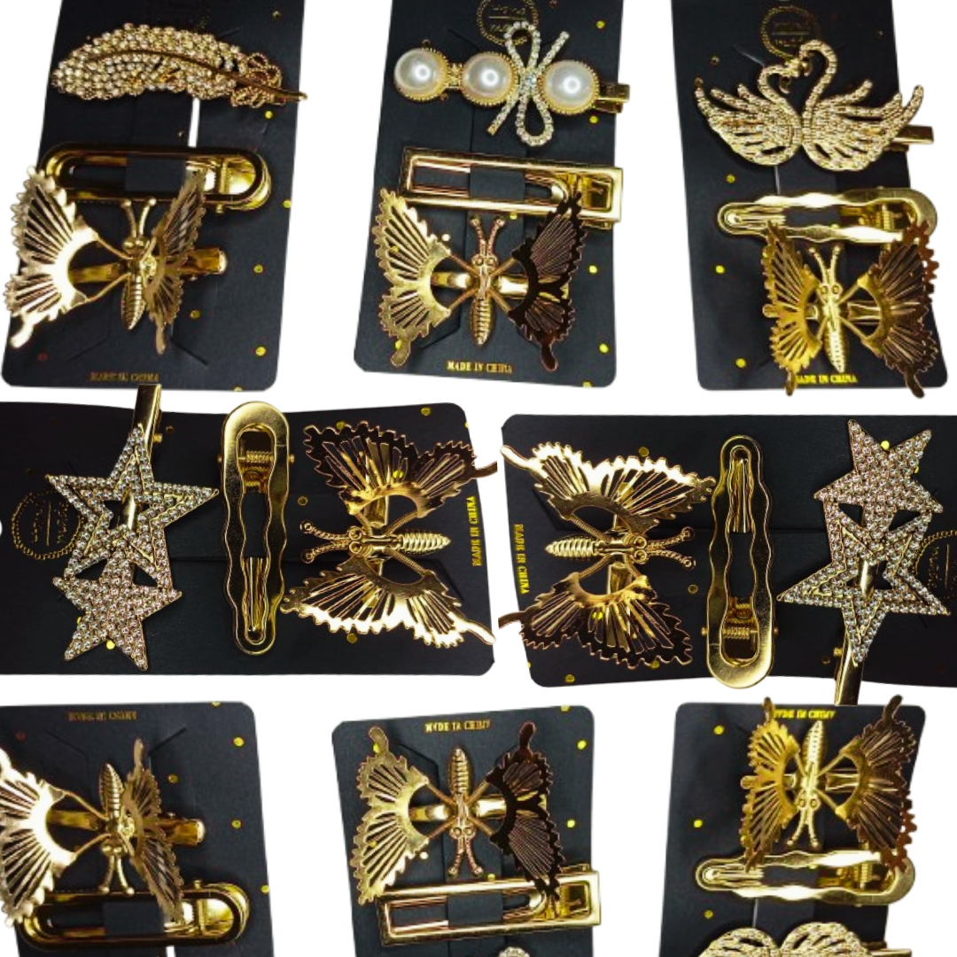 Upgrade your hairstyle with this stunning three crystal hair clips, designed to add a touch of elegance and sparkle to any look. Each set features three unique, randomly selected designs with high-quality crystal stones set in a luxurious gold-tone finish. Perfect for special occasions or everyday glam.