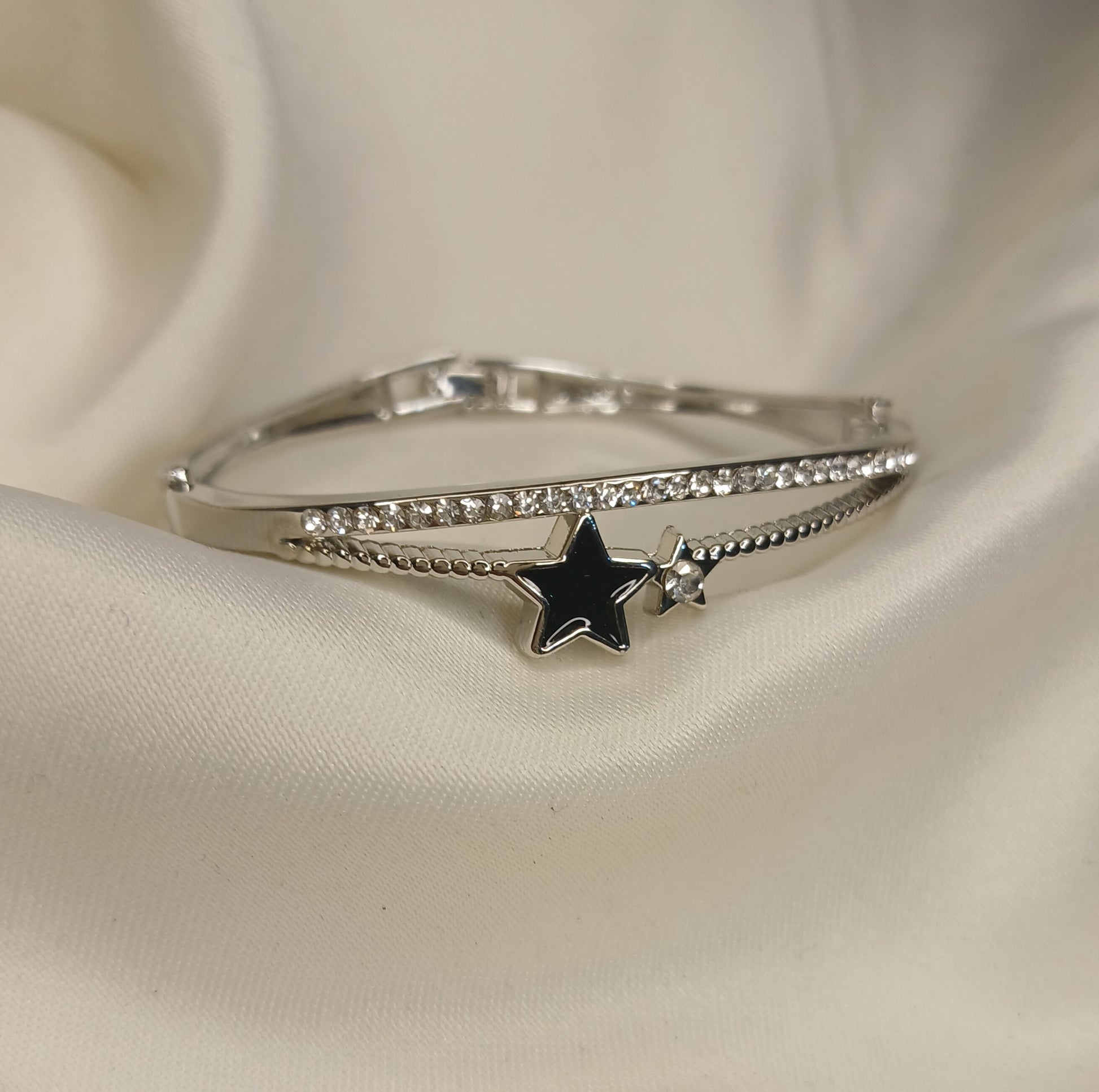Celestial Star Bangle – Elegant Silver & Gold Bracelet
