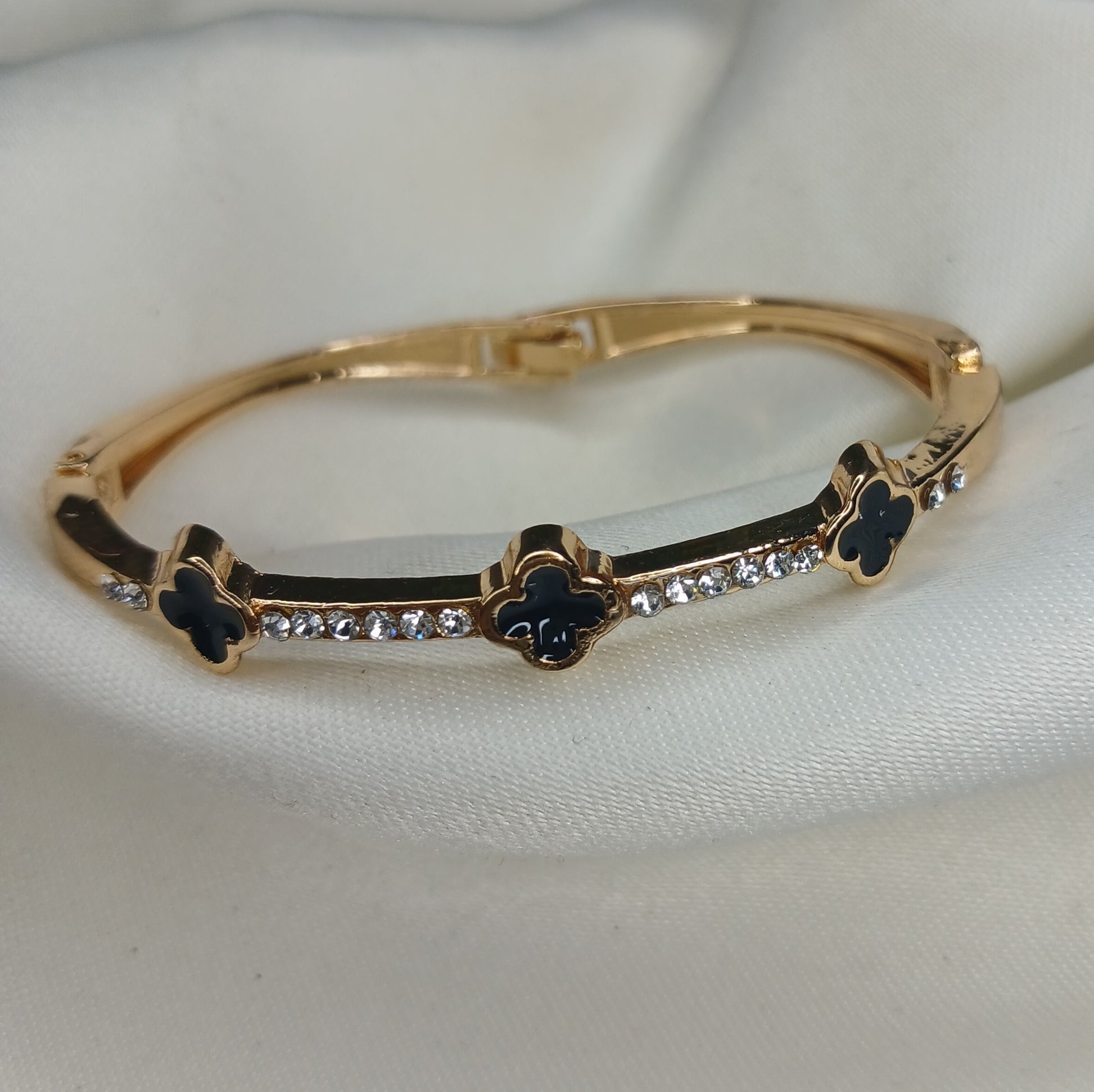 Luxury Triple Black Clover Bangle with Crystals – Gold & Silver Options
